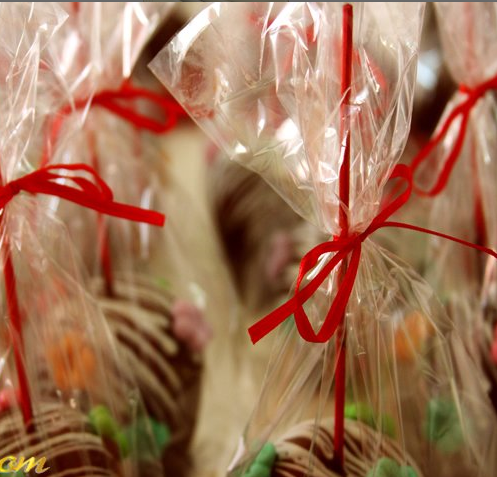 Espetinhos de doces, sabor: brigadeiro, menta, nozes, bicho-de-pé, cereja.